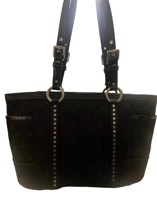 Coach Signature Black Jacquard Tote with Studs