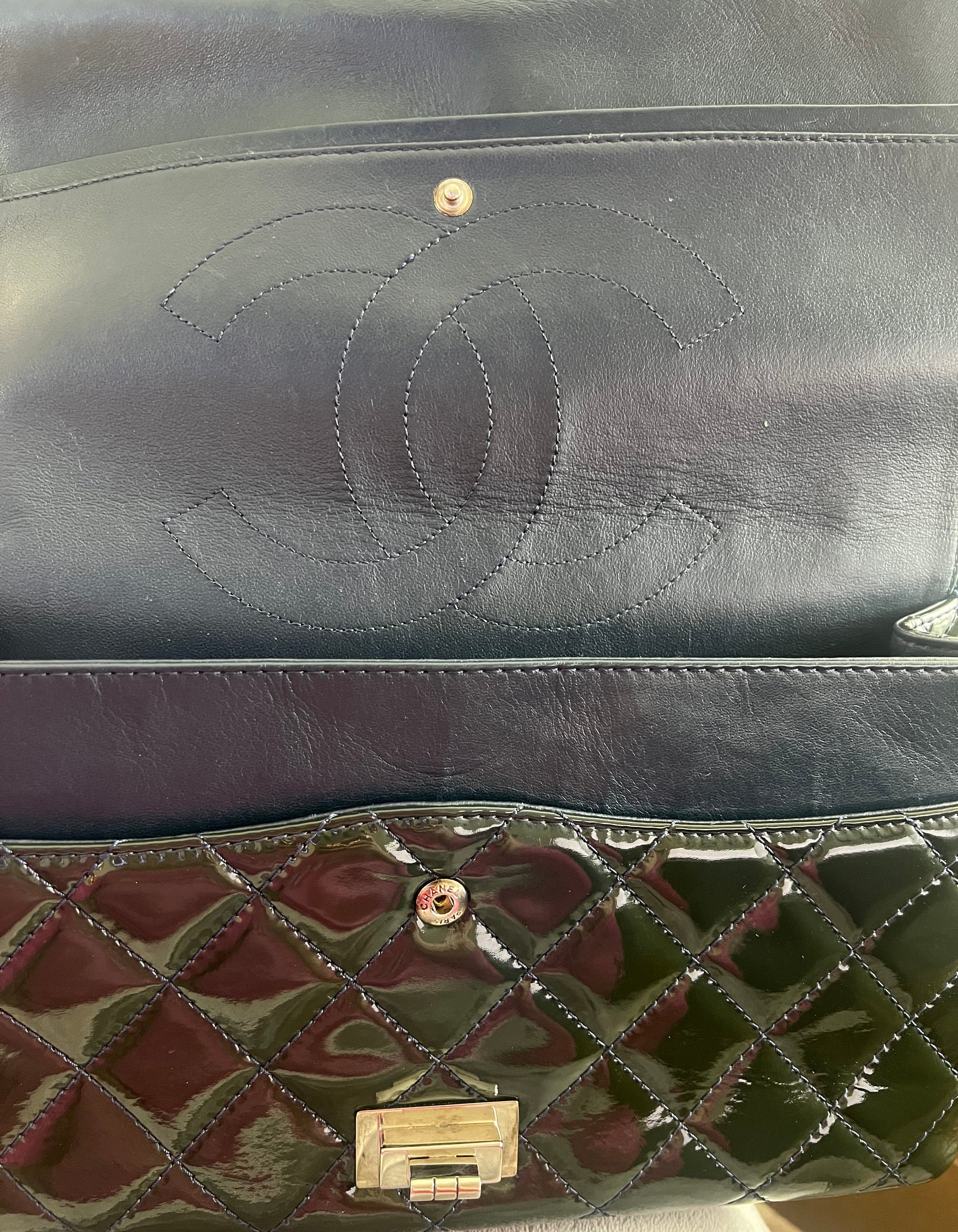 Chanel Patent Dark Green Double Flap Jumbo Reissue 227