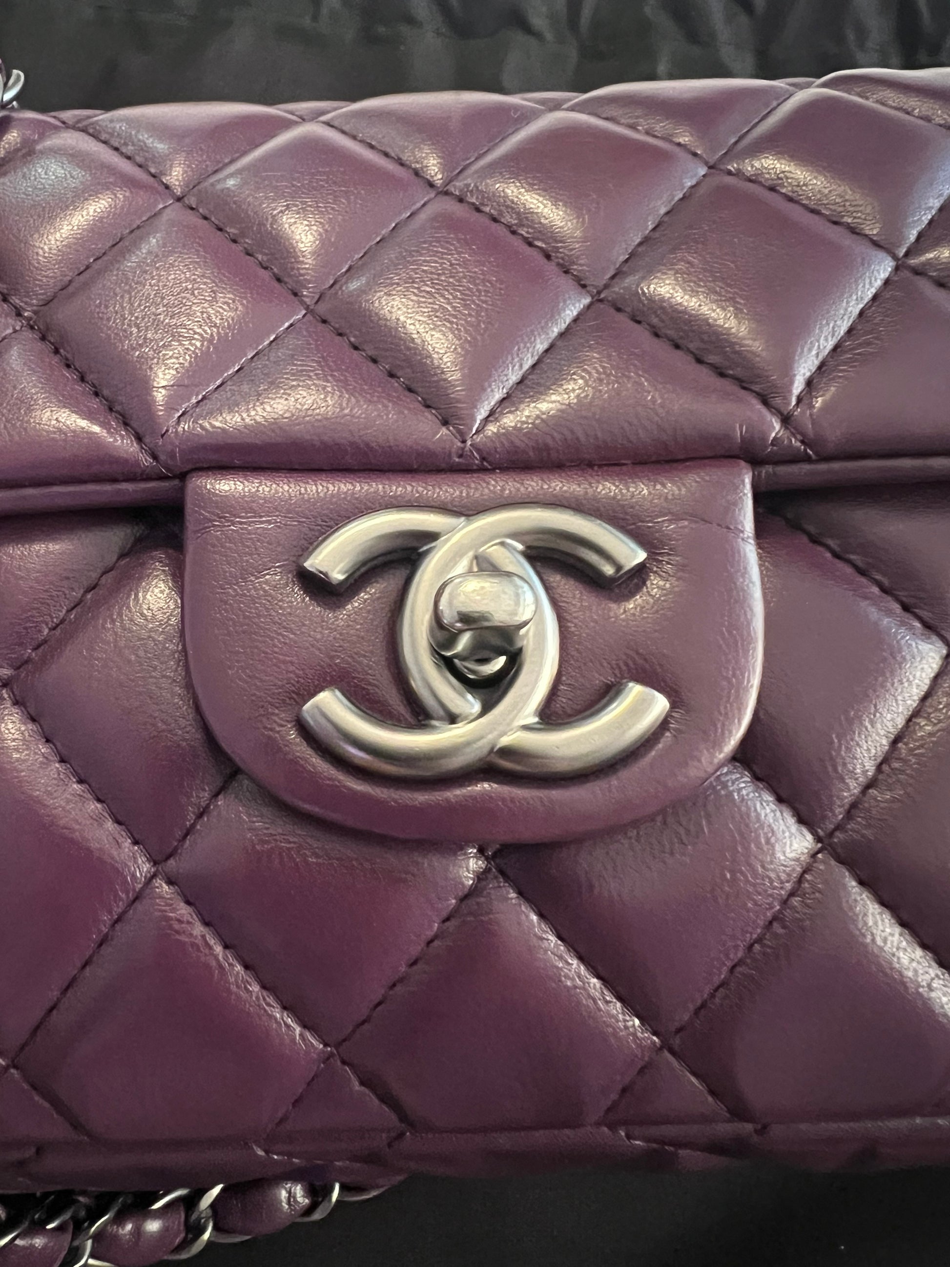 The bag is in very good condition. There is a spot on the side and wear to the leather. The bag has more than likely been touched up in a few spots but I am unable to say if it was every full repainted. The hardware/plate under the flap has a mark/discoloration. All sales final.