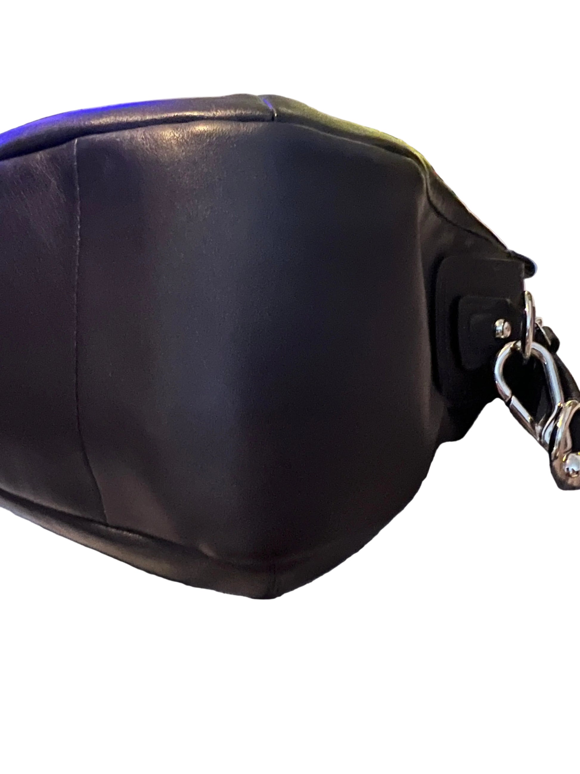 Excellent condition black leather with silver hardware. Some relaxation in shape and normal wrinkling in leather. Very minor signs of wear overall.