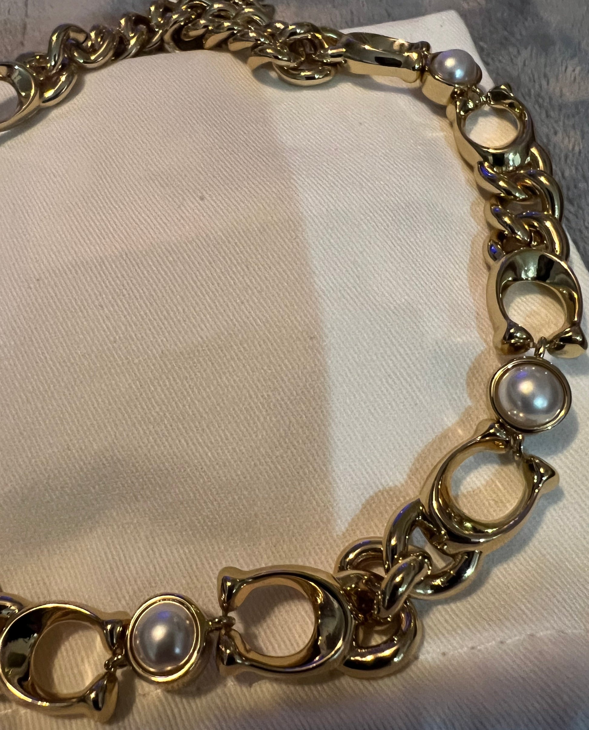 Coach Gold Statement C and Faux Pearl Necklace