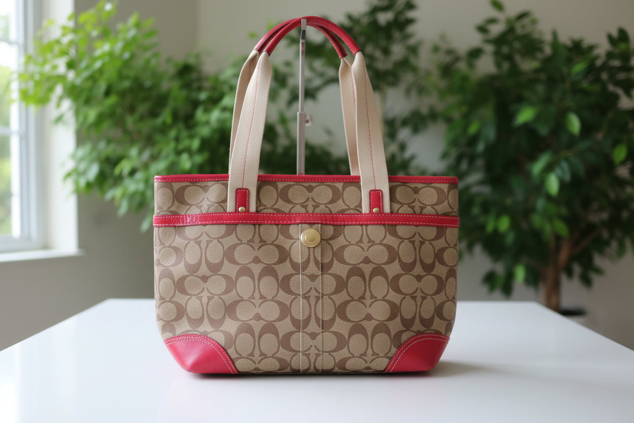 Coach Heritage Signature Jacquard and Pink Leather