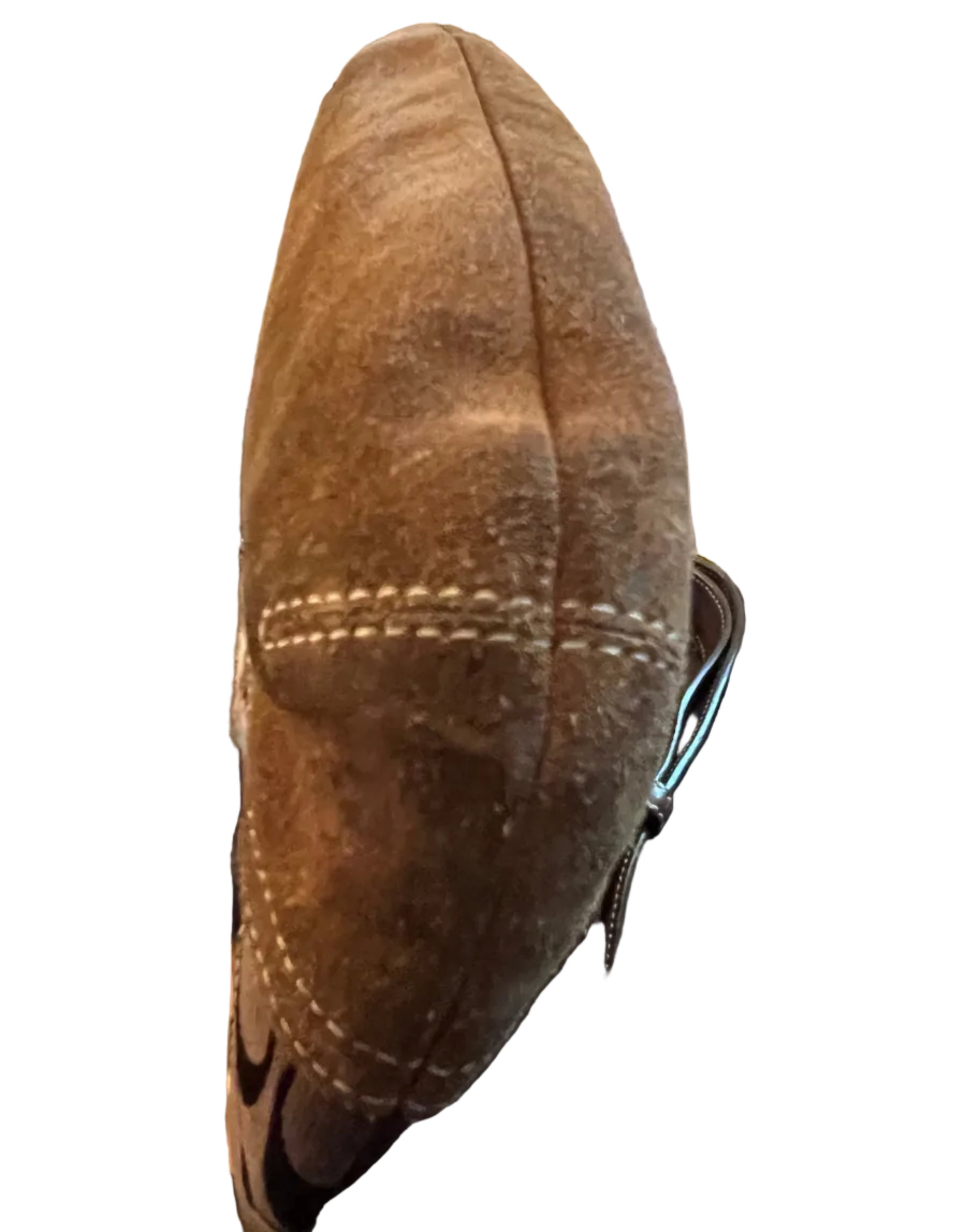 This bag is in very good condition. There is minor wear to the exterior suede on the sides and corners. Minor darkening on spots of the exterior. Leather has normal wrinkles. All sales final.