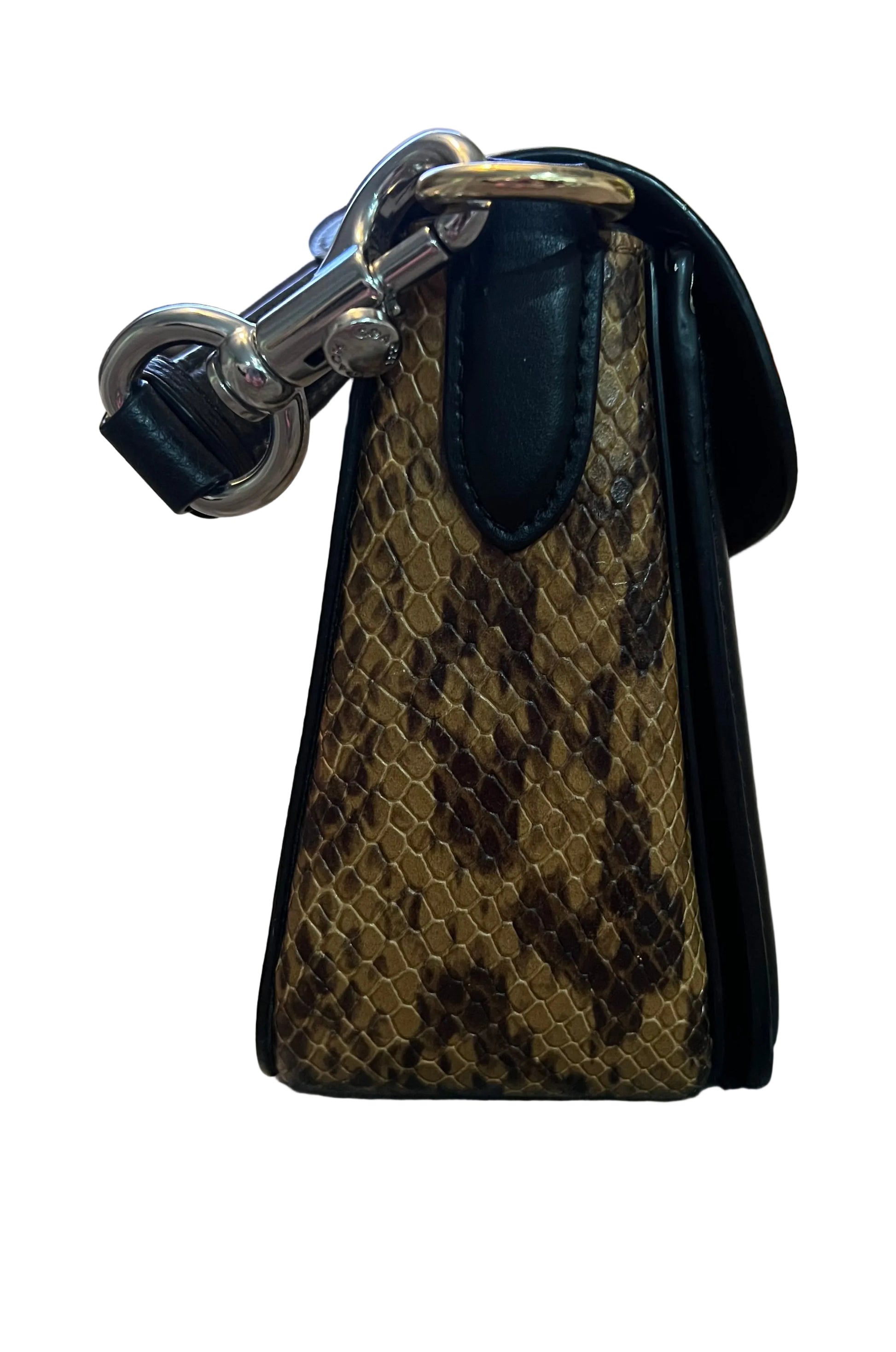 Georgia signature coated canvas and snakeskin shoulder bag, Gold toned hardware on bag and silver hardware on strap.