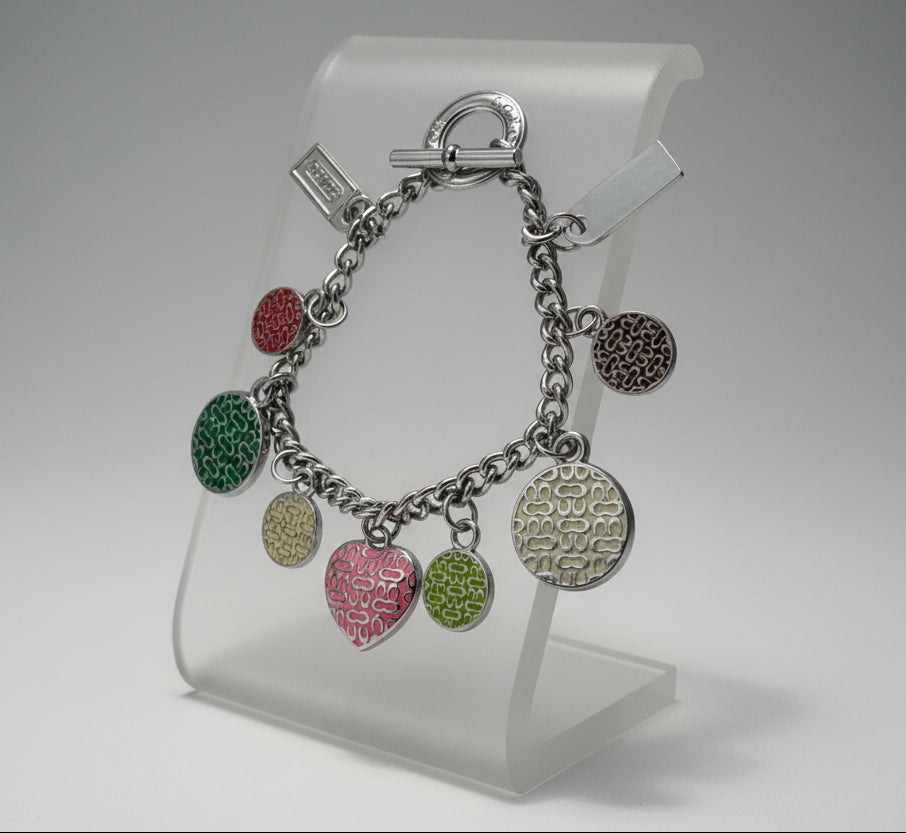 The bracelet is in very good condition with a few hairline scratches and maybe some slight darkening.
