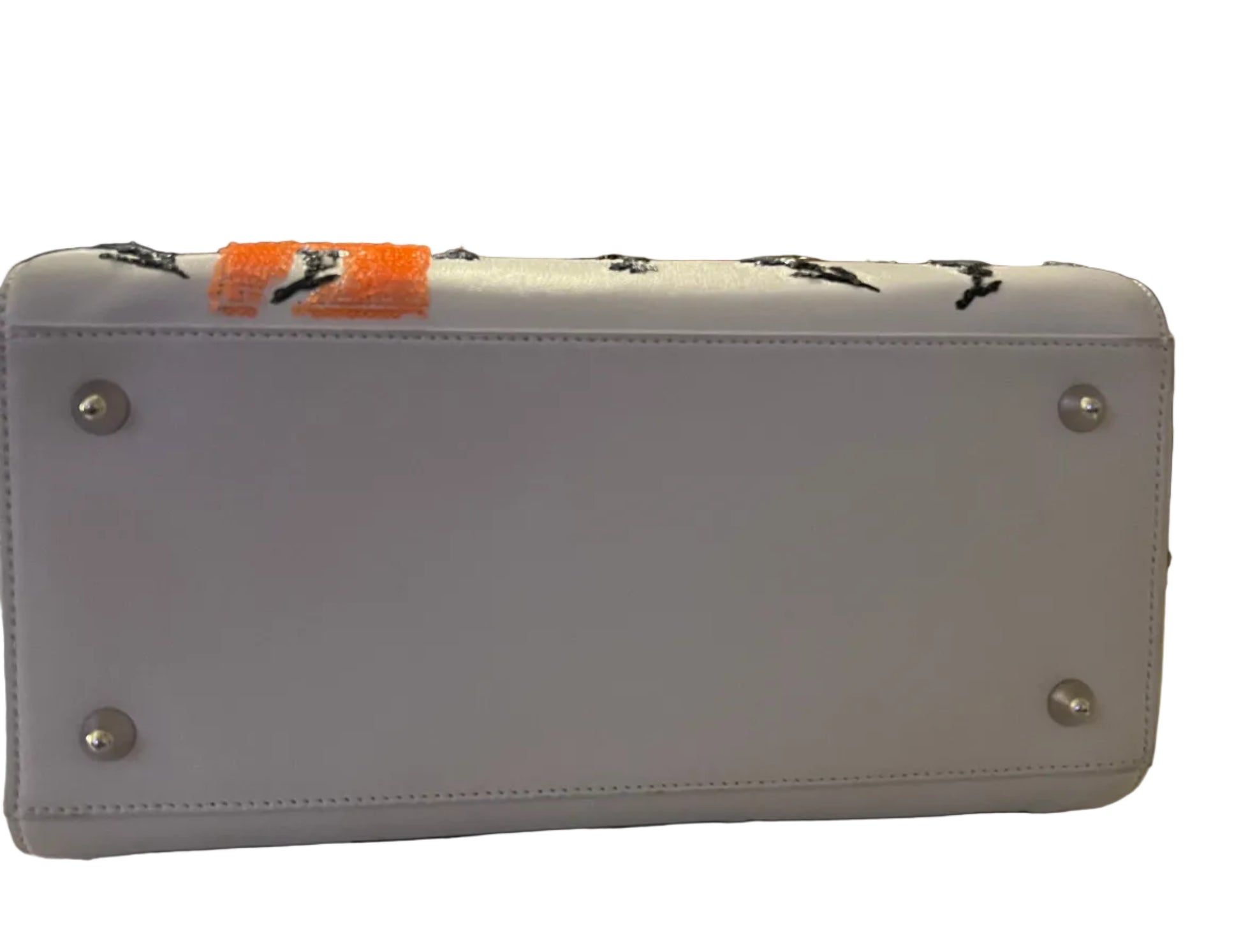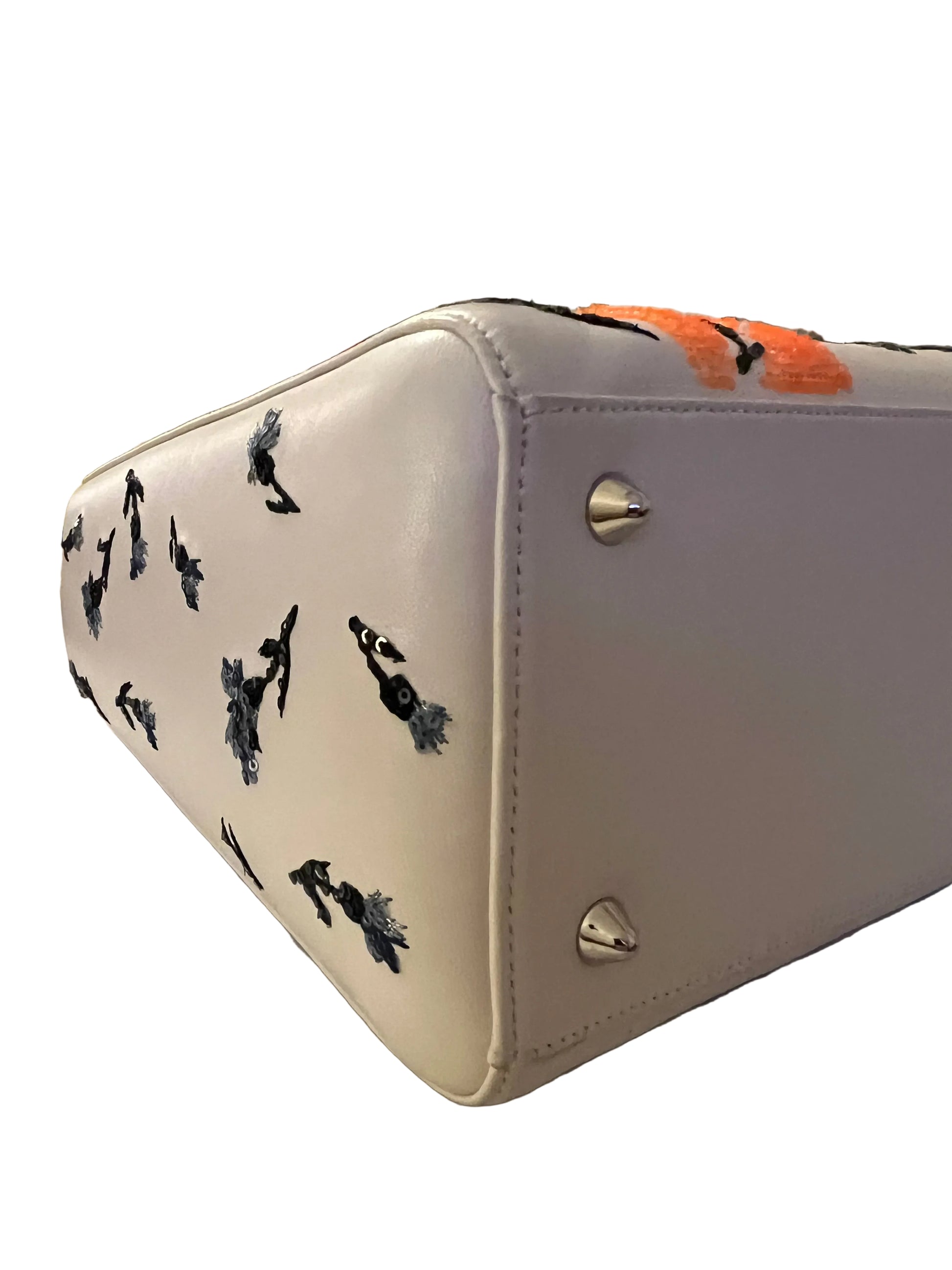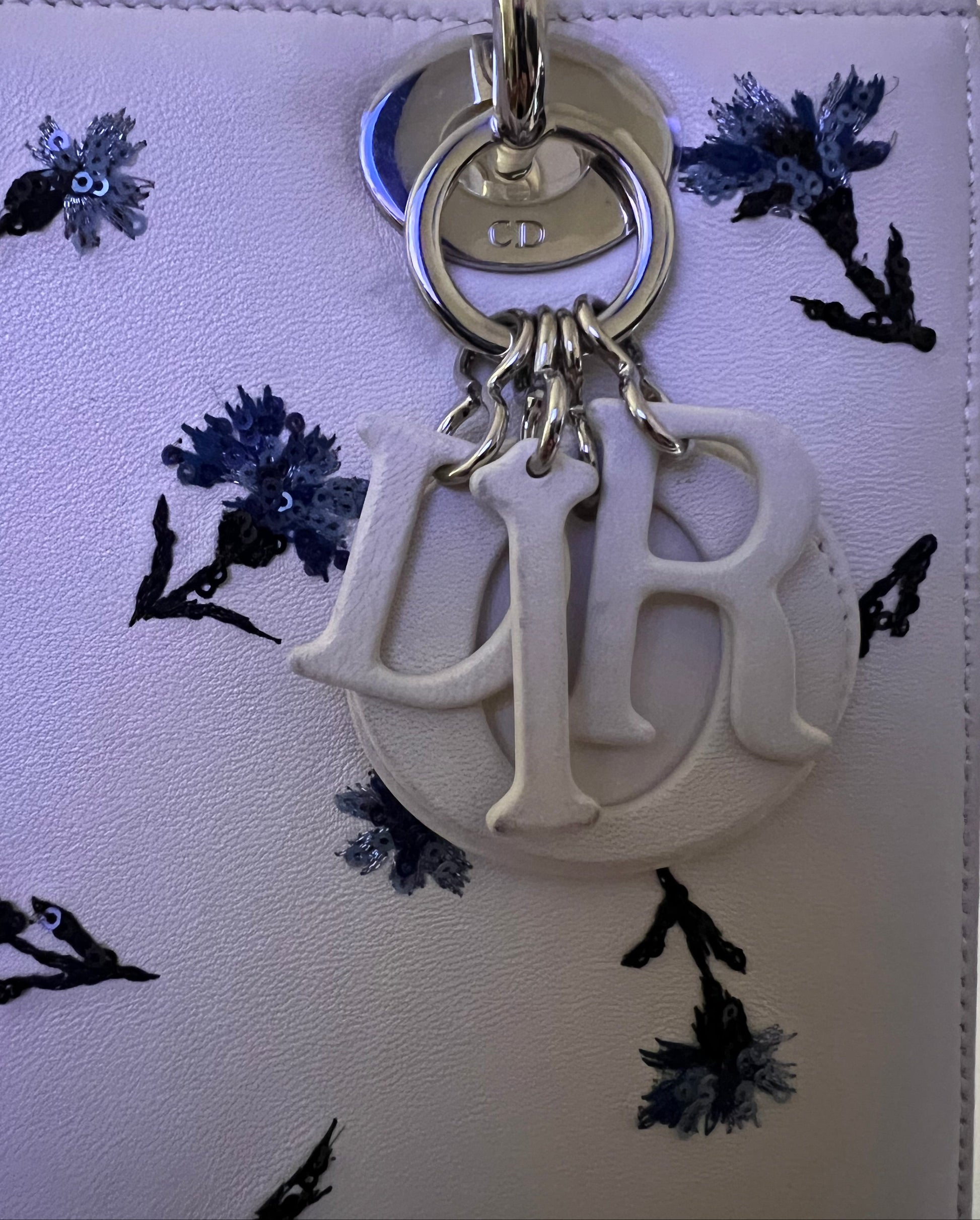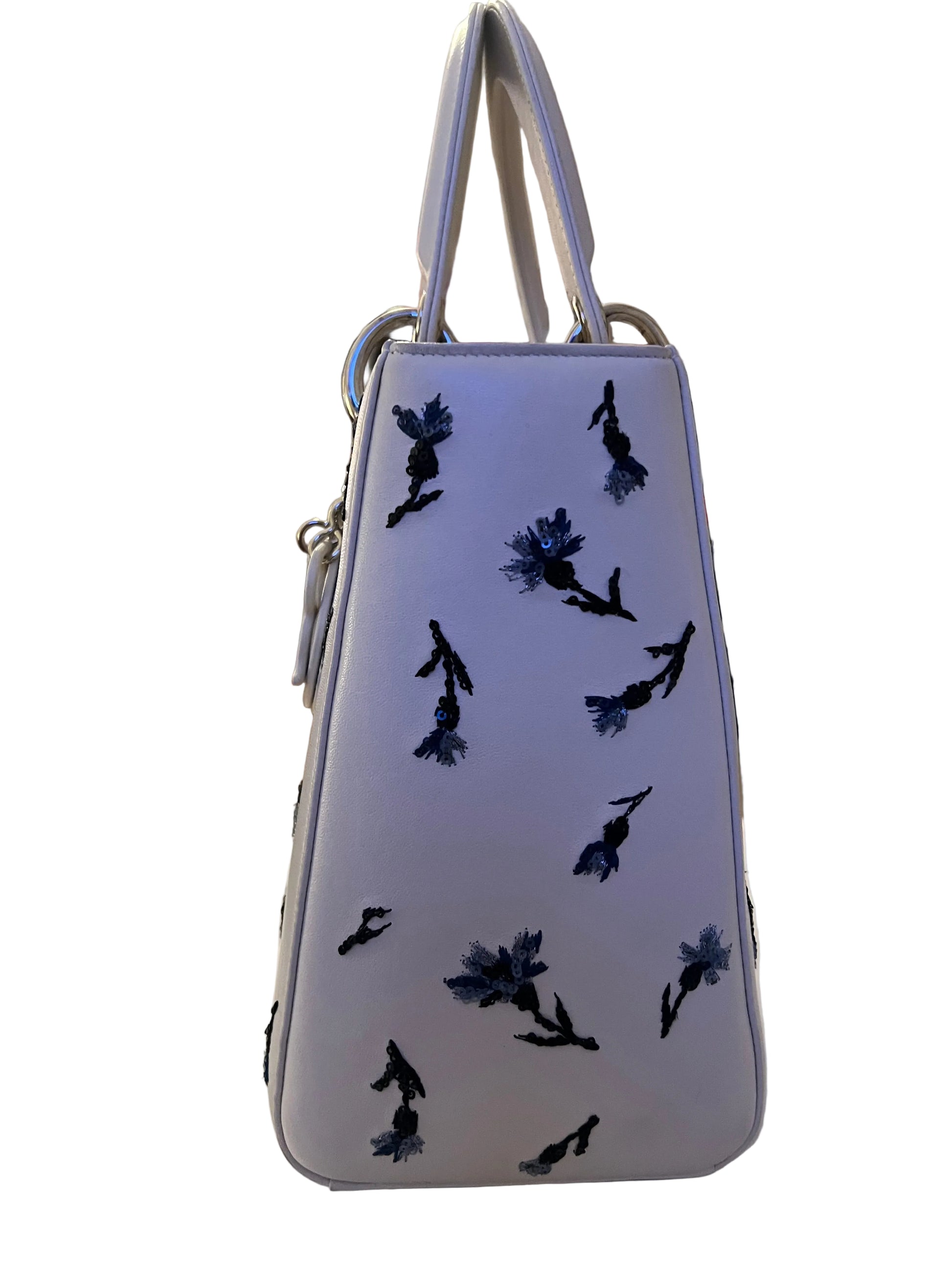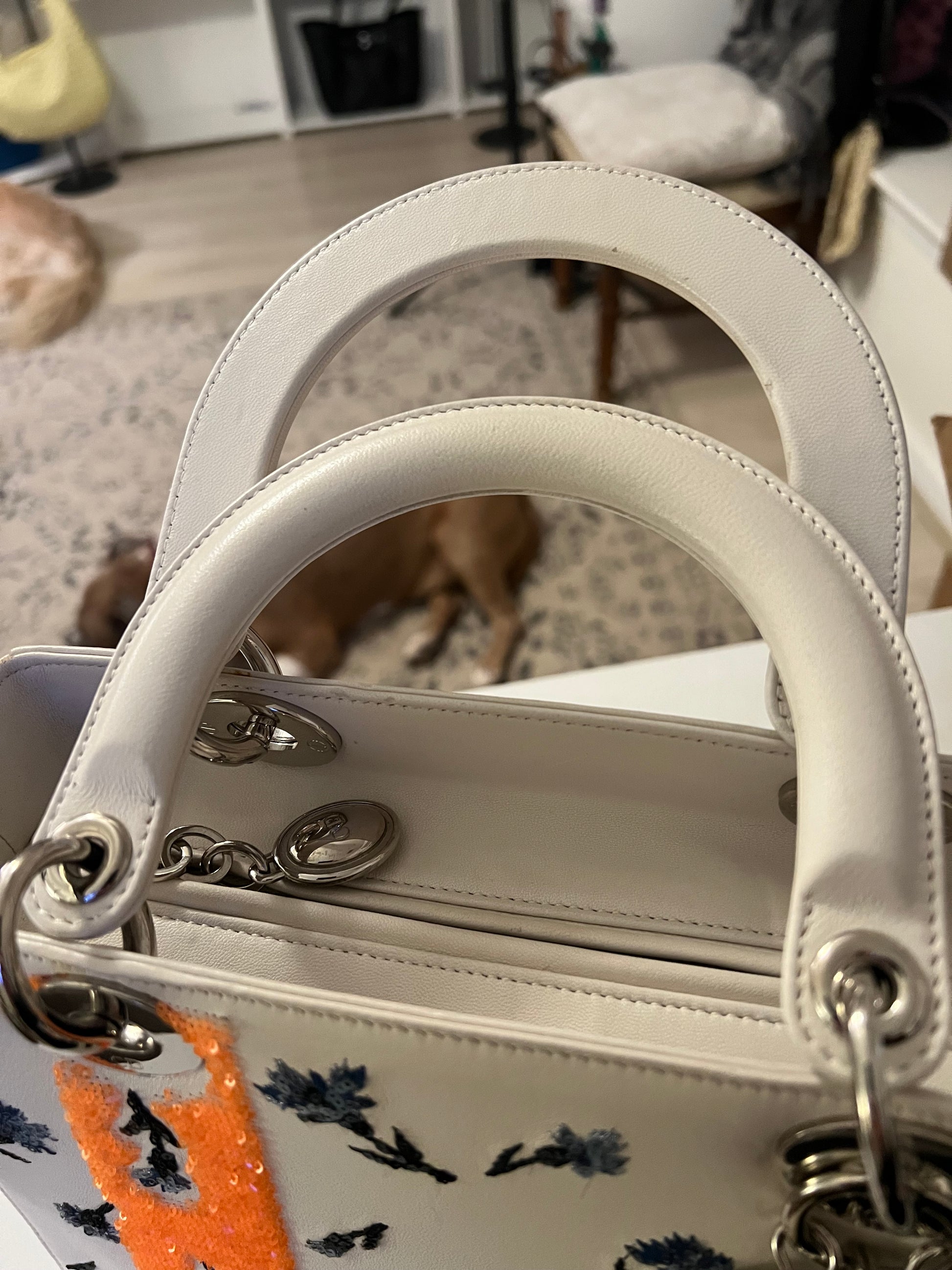 This bag is in very good condition. The leather has some minor normal wrinkling and scuffs. There is embroidery and sequins on both sides of the bag. The hardware has some hairline scratches.