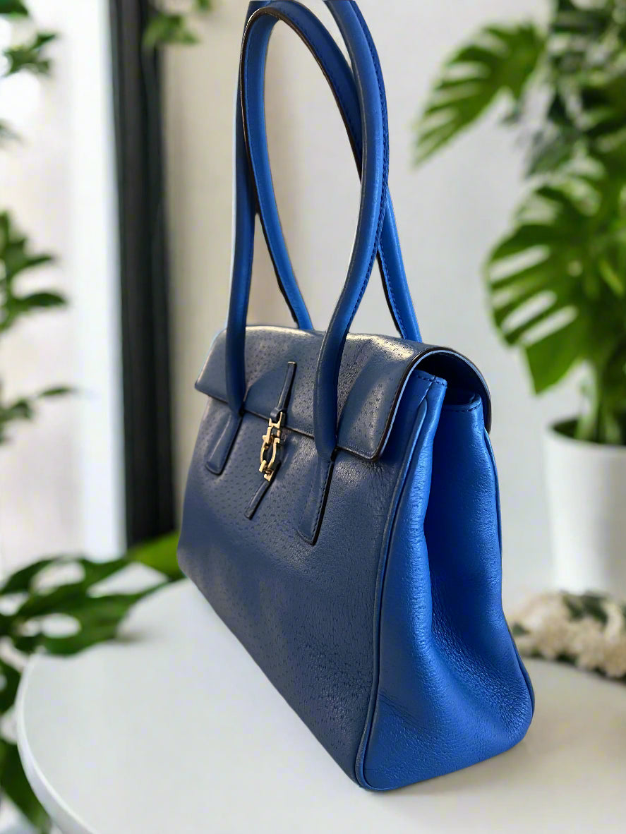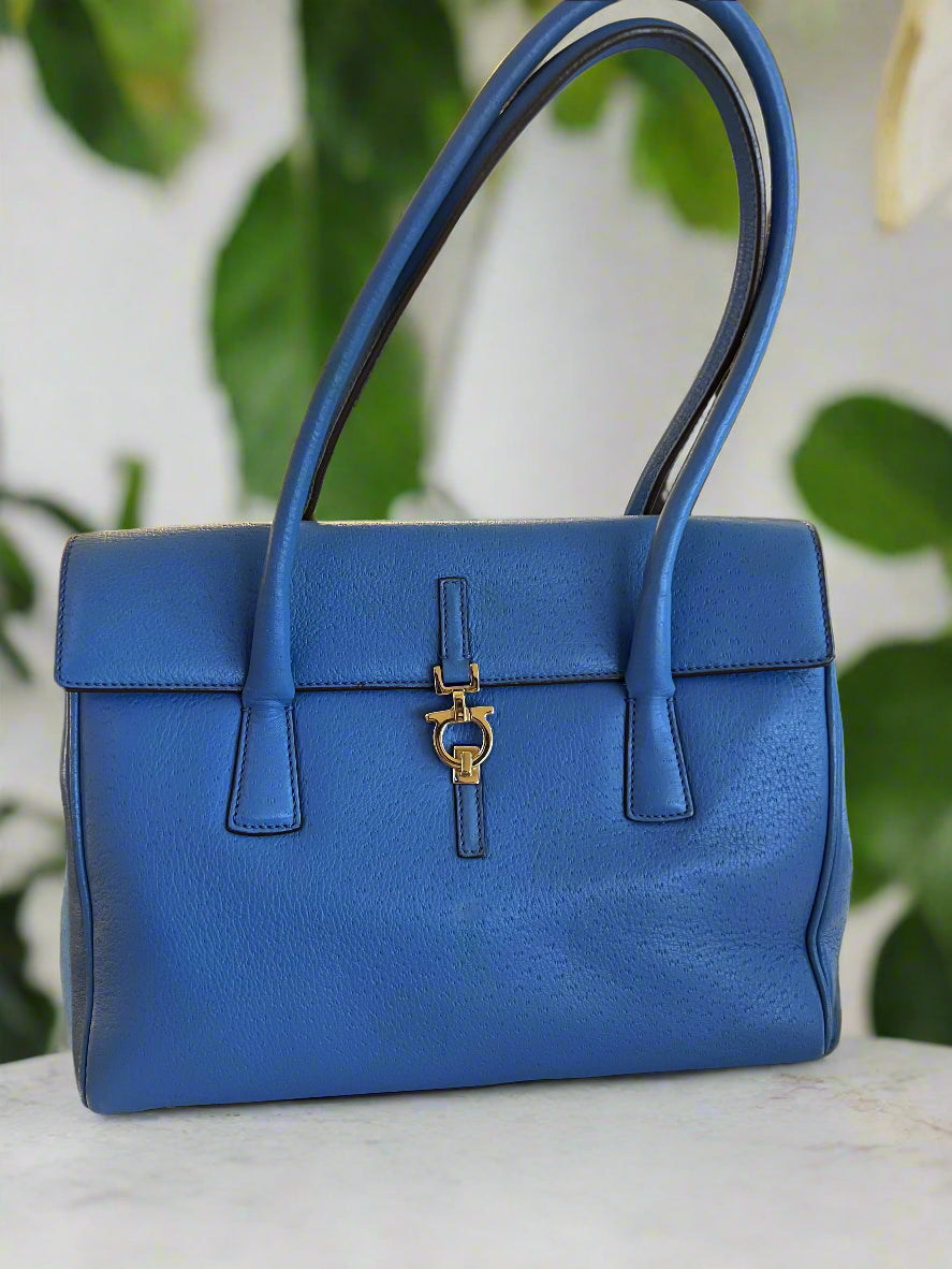 Pre-owned Ferragamo blue leather shoulder bag. Perfect for those who appreciate the elegance of classic design. This bag combines functionality with style, making it a versatile addition to your wardrobe. Ideal for daily use or light outings, it offers a touch of sophistication.