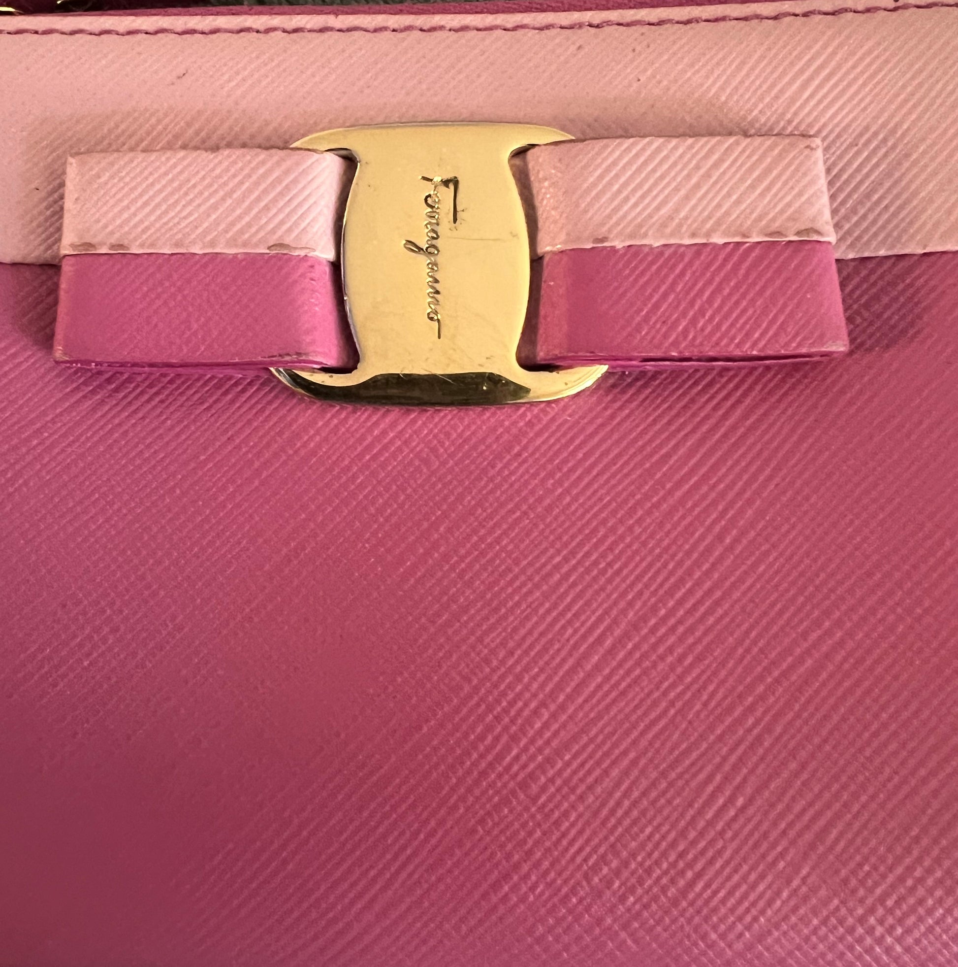 Ferragamo Pink Saffiano Leather Zip Around Wallet