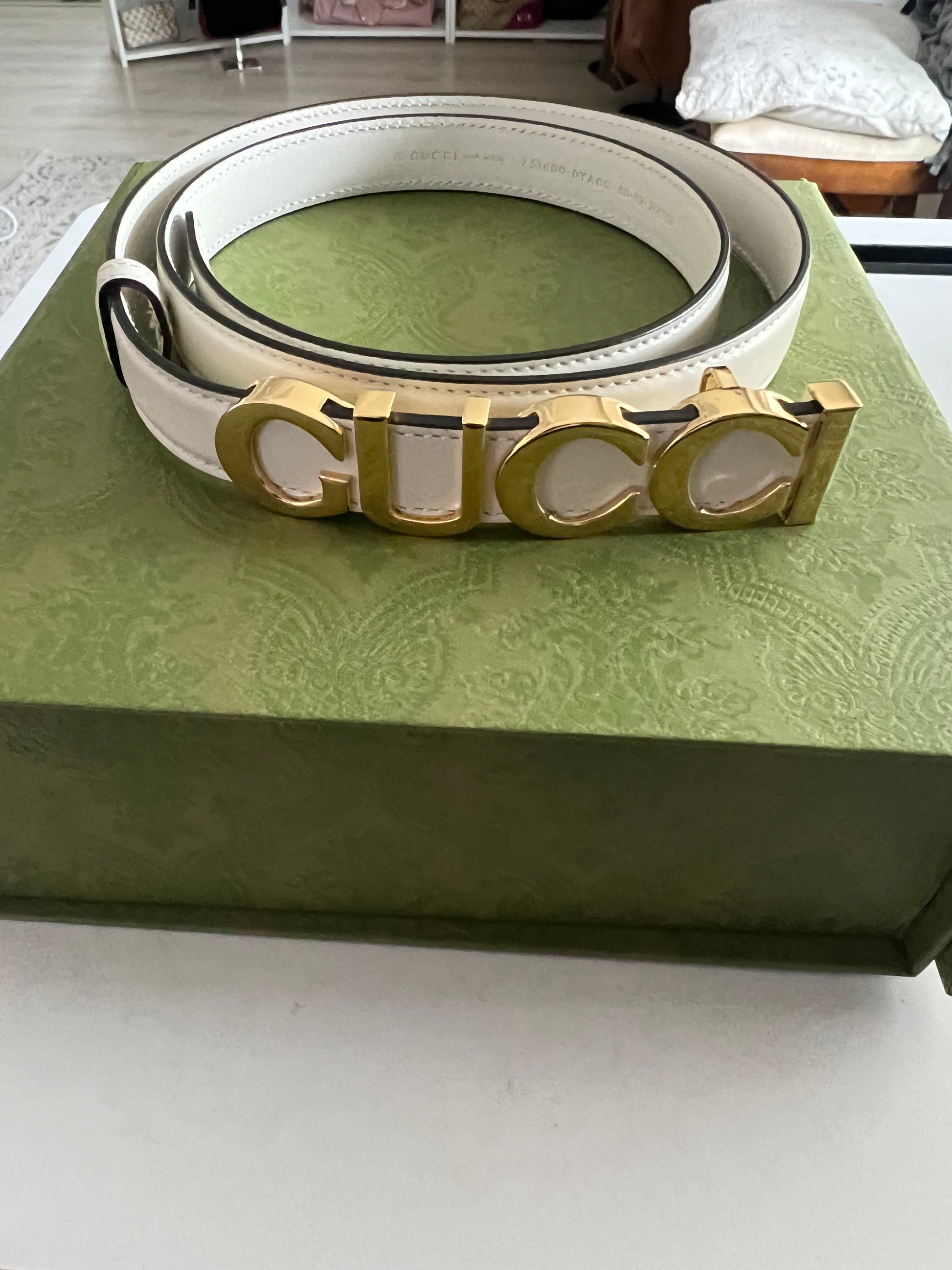 Gucci Ivory and Gold Belt Size 80