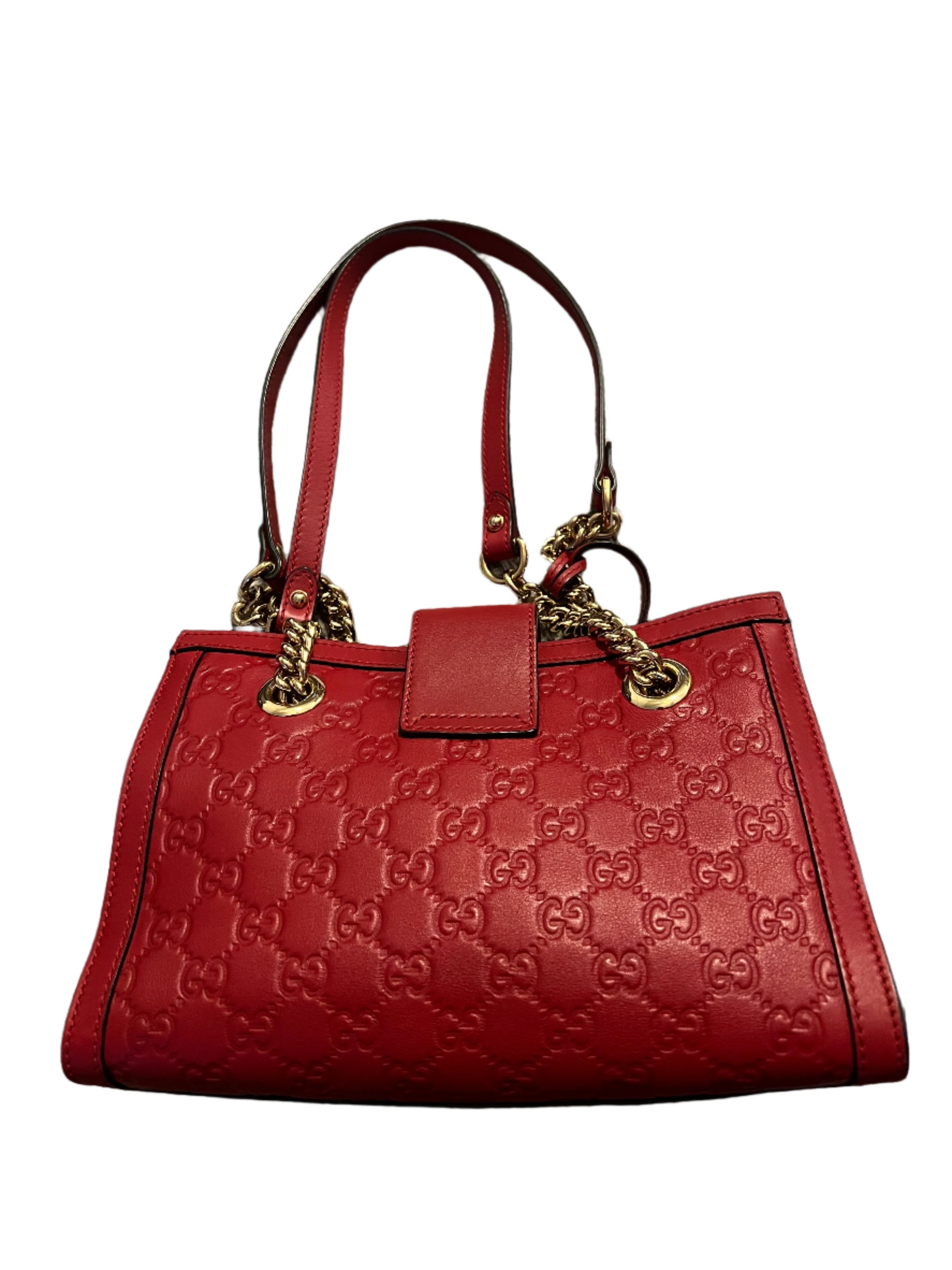 Pre-Owned Gucci Red Embossed Leather Padlock Bag