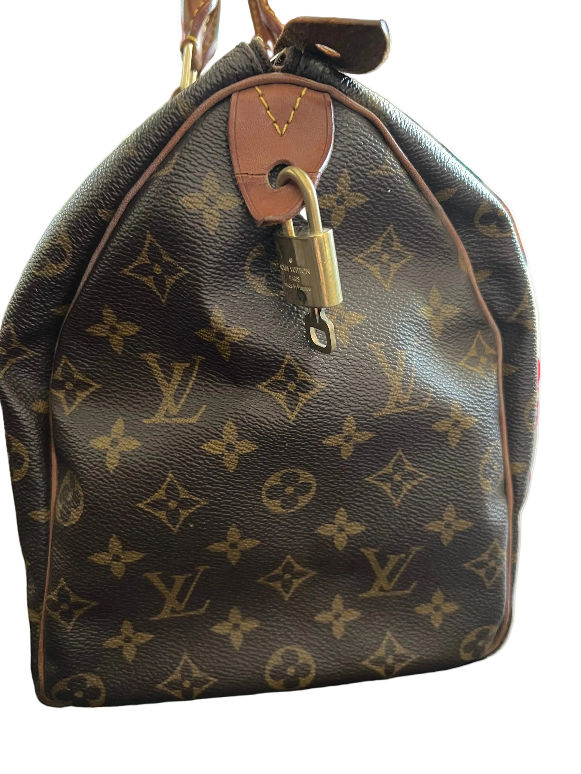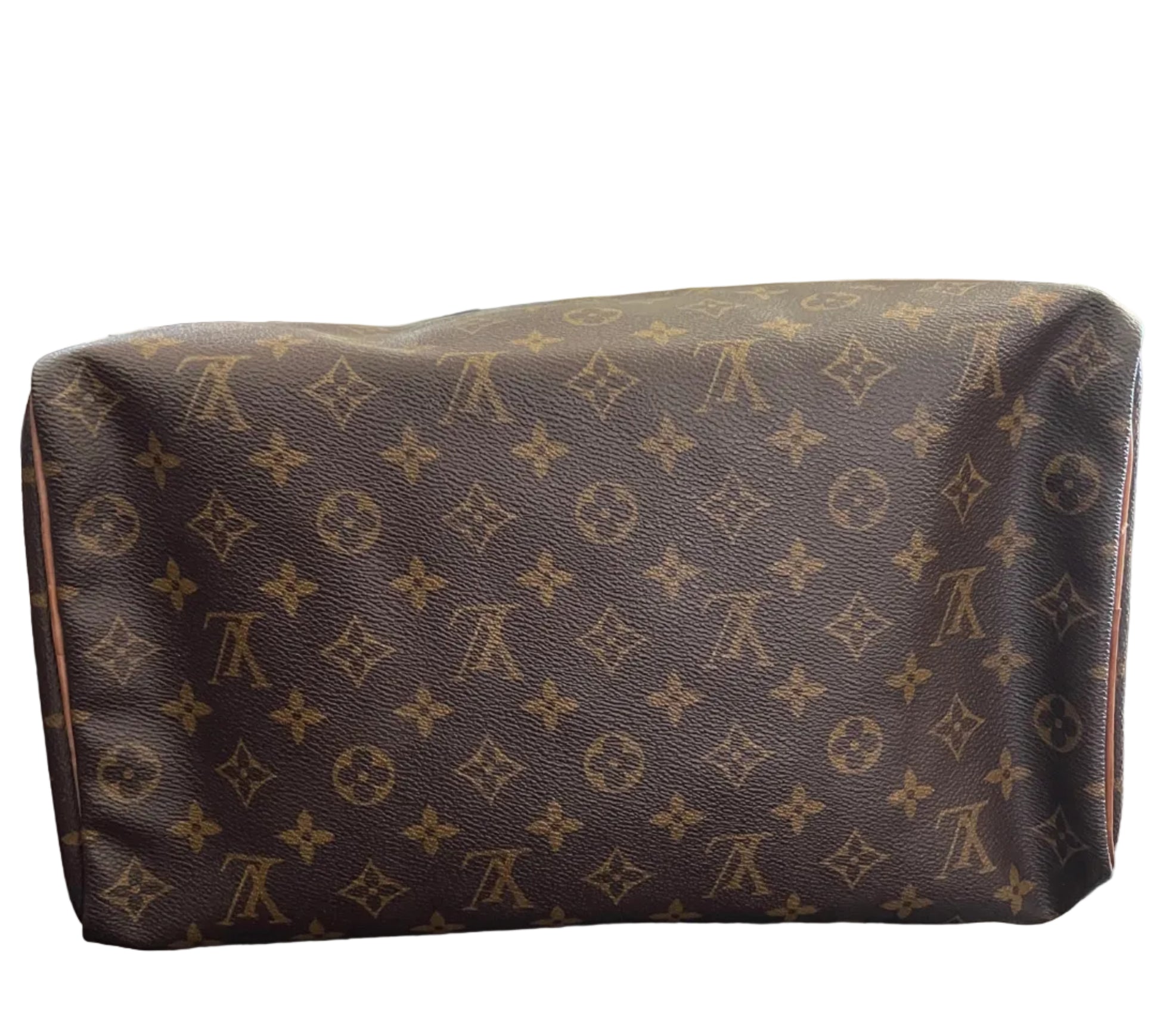 This Speedy is in very good condition. The shape has relaxed due to normal use. The leather has a darker patina but is pretty even. The hardware has slightly darkened. Corners have minor rubbing. All sales final.