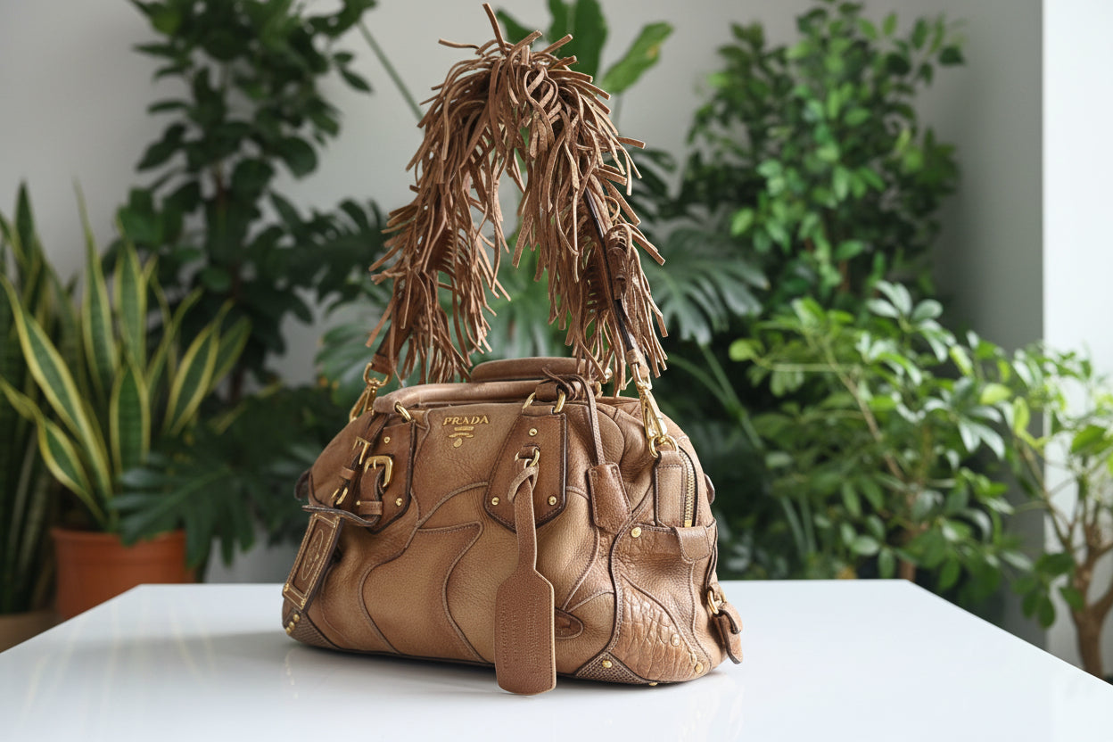 Prada Leather Bauletto Fringe Strap Satchel