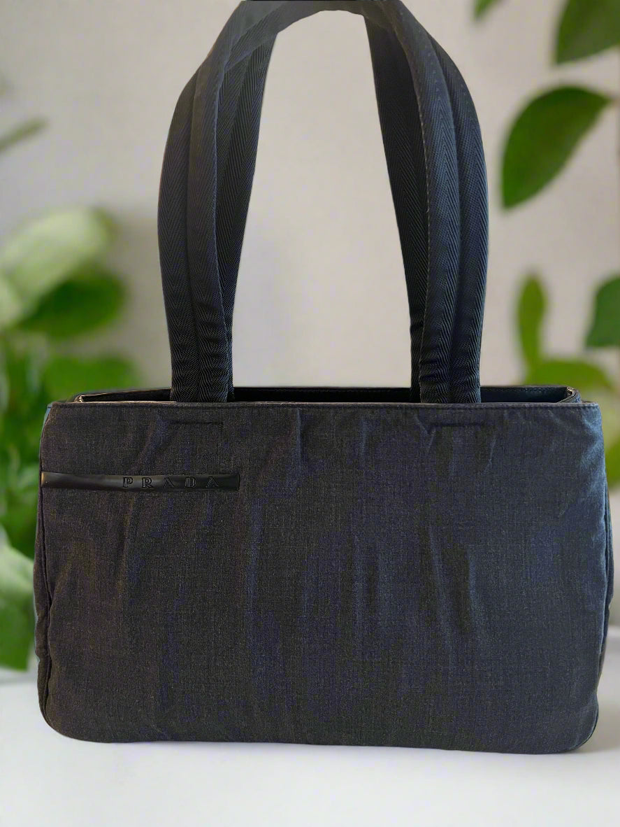 Pre-Owned Prada Nylon Tessuto Sport Tote in Dark Gray. This tote bag is a stylish accessory for everyday use. Crafted from nylon tessuto, it offers durability and a sleek design. Perfect for carrying essentials, it combines functionality with fashion.