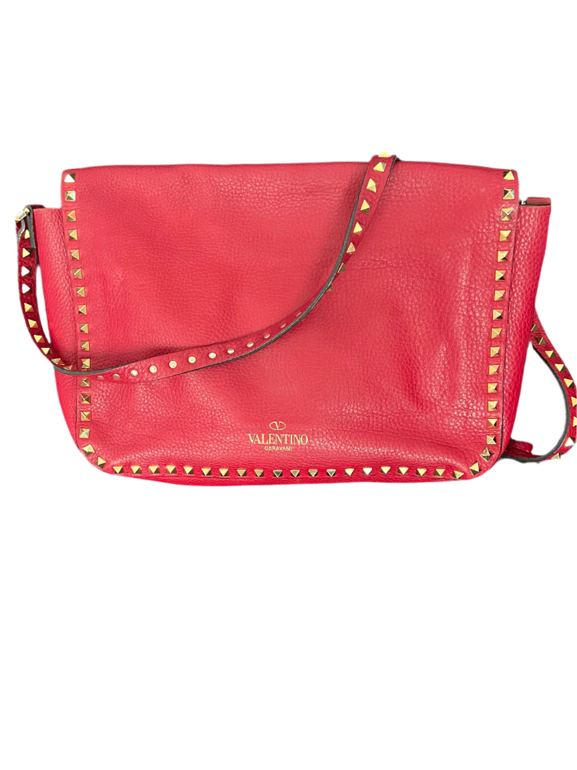 This pre-owned Valentino shoulder bag features a classic Pebbled Calfskin leather finish. The Rockstud design adds a touch of luxury and functionality. Perfect for those who appreciate timeless style.
